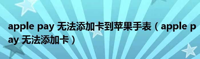 大家好,慧慧来为大家解答以上问题,apple pay 无法添加卡到苹果手表,apple pay 无法添加卡很多人还不知道,现在让我们一起来看看吧!