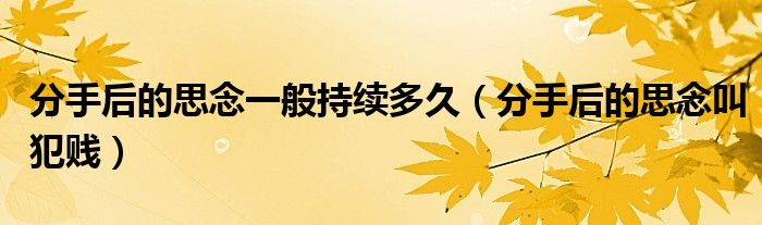 大家好,慧慧来为大家解答以上问题,分手后的思念一般持续多久,分手后的思念叫犯贱很多人还不知道,现在让我们一起来看看吧!