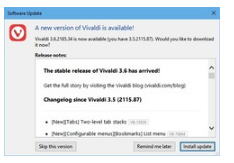 除了新的两级选项卡堆栈之外,Vivaldi 3.6(对于Windows用户为3.6.2165.34,对于喜欢长版本号的用户而言)还进行了许多小的优化,并对可配置菜单和地址栏进行了调整,而macOS用户获得了TouchID支持。从3.5到3.6的变更日志相当长,那些好奇的人可以照常在Vivaldi的官方网站上查看。目前,Android版本仍为3.5版,但是随着电话显示尺寸的变化,迟早会在其中看到两级标签堆栈也就不足为奇了。