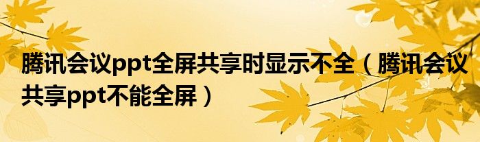大家好,跳跳为你解答以上问题。腾讯会议ppt全屏共享时显示不全,腾讯会议共享ppt不能全屏这个问题很多人还不知道,现在让我们一起来看看吧!