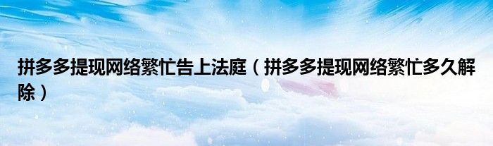 大家好,跳跳为你解答以上问题。拼多多提现网络繁忙告上法庭,拼多多提现网络繁忙多久解除这个问题很多人还不知道,现在让我们一起来看看吧!