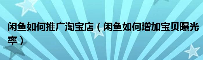 大家好,跳跳为你解答以上问题。闲鱼如何推广淘宝店,闲鱼如何增加宝贝曝光率这个问题很多人还不知道,现在让我们一起来看看吧!