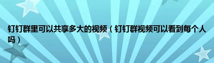 大家好,跳跳为你解答以上问题。钉钉群里可以共享多大的视频,钉钉群视频可以看到每个人吗这个问题很多人还不知道,现在让我们一起来看看吧!
