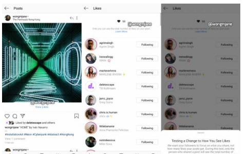 引人注目的推手Jane Manchun Wong是在Android代码中发现此设计更改并将其分享给Tech Crunch的人。您会收到一条通知,通知您只有您将能够看到您的帖子被点赞的总数,因为他们希望您的关注者能够专注于您的帖子,而不是关注点。他们将能够看到一些喜欢该帖子的人的面孔和名字,但看不到喜欢总数的人。