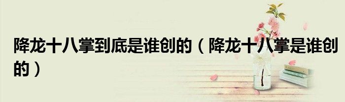 大家好,小晋来为大家解答以下问题,关于降龙十八掌到底是谁创的,降龙十八掌是谁创的很多人还不知道,今天让我们一起来看看吧!