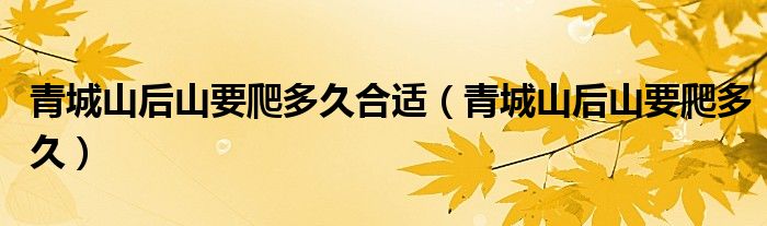 大家好,小晋来为大家解答以下问题,关于青城山后山要爬多久合适,青城山后山要爬多久很多人还不知道,今天让我们一起来看看吧!