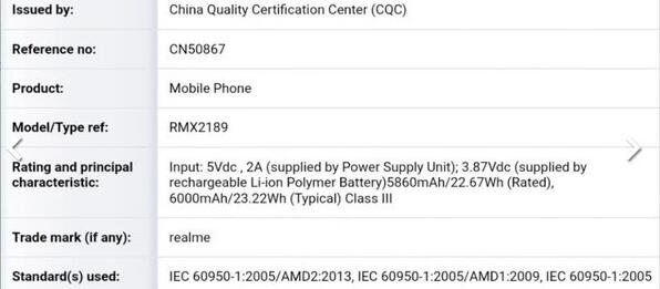 Oppo分拆后的Realme可能会通过获得多项认证的Realme C12很快更新其C系列。新款C12配备了一块6000mAh的大电池,现已在中国质量认证(CQC),NBTC和其他认证网站上发现。