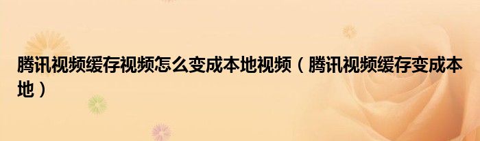 腾讯视频缓存视频怎么变成本地视频(腾讯视频缓存变成本地)
