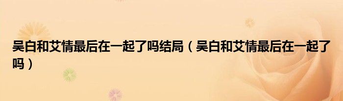 大家好,小晋来为大家解答以下问题,关于吴白和艾情最后在一起了吗结局,吴白和艾情最后在一起了吗很多人还不知道,今天让我们一起来看看吧!