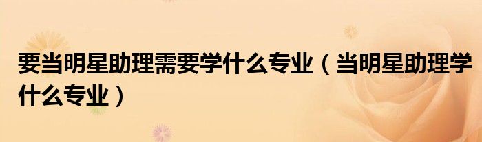 2、当明星助理一般没有专业限制,但管理是基础。一般来说,明星助理需要细心、冷静、稳重、热情的人。只要具备一定的人际交往能力,加上营销知识和文化素养,就可以胜任。