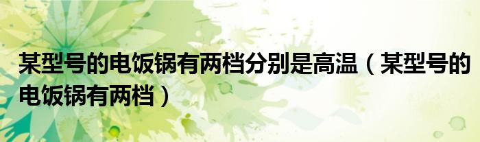 关于某型号的电饭锅有两档分别是高温,某型号的电饭锅有两档这个很多人还不知道,今天菲菲来为大家解答以上的问题,现在让我们一起来看看吧!