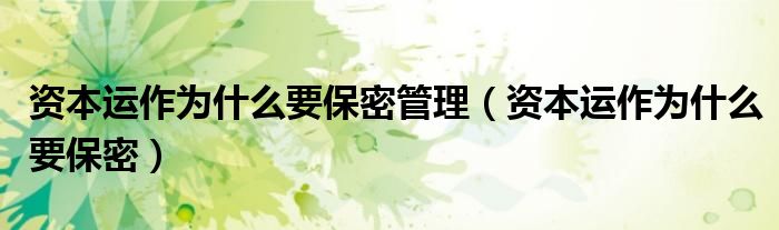 大家好,小晋来为大家解答以下问题,关于资本运作为什么要保密管理,资本运作为什么要保密很多人还不知道,今天让我们一起来看看吧!