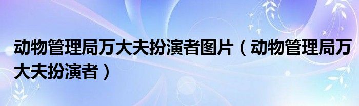 动物管理局万大夫扮演者图片(动物管理局万大夫扮演者)
