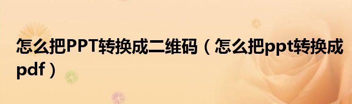 关于怎么把PPT转换成二维码,怎么把ppt转换成pdf这个很多人还不知道,今天菲菲来为大家解答以上的问题,现在让我们一起来看看吧!