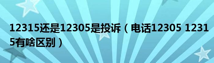 关于12315还是12305是投诉,电话12305 12315有啥区别这个很多人还不知道,今天菲菲来为大家解答以上的问题,现在让我们一起来看看吧!