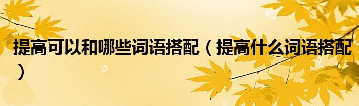 大家好,小晋来为大家解答以下问题,关于提高可以和哪些词语搭配,提高什么词语搭配很多人还不知道,今天让我们一起来看看吧!