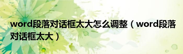 关于word段落对话框太大怎么调整,word段落对话框太大这个很多人还不知道,今天菲菲来为大家解答以上的问题,现在让我们一起来看看吧!