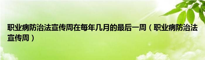 关于职业病防治法宣传周在每年几月的最后一周,职业病防治法宣传周这个很多人还不知道,今天菲菲来为大家解答以上的问题,现在让我们一起来看看吧!