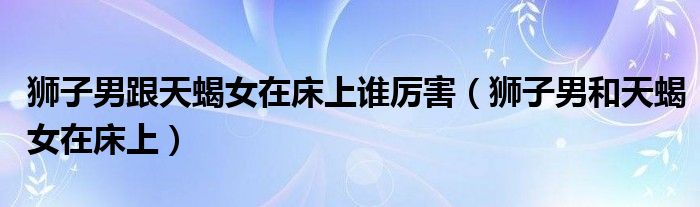 大家好,小晋来为大家解答以下问题,关于狮子男跟天蝎女在床上谁厉害,狮子男和天蝎女在床上很多人还不知道,今天让我们一起来看看吧!