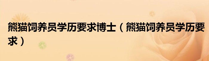大家好,小晋来为大家解答以下问题,关于熊猫饲养员学历要求博士,熊猫饲养员学历要求很多人还不知道,今天让我们一起来看看吧!