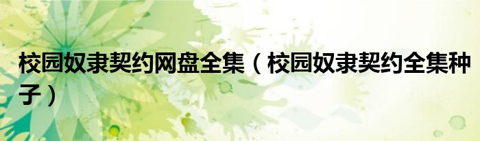 关于校园奴隶契约网盘全集,校园奴隶契约全集种子这个很多人还不知道,今天菲菲来为大家解答以上的问题,现在让我们一起来看看吧!