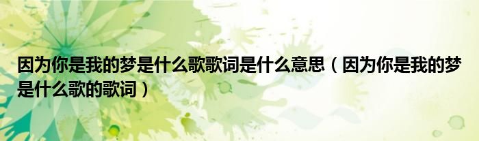 关于因为你是我的梦是什么歌歌词是什么意思,因为你是我的梦是什么歌的歌词这个很多人还不知道,今天菲菲来为大家解答以上的问题,现在让我们一起来看看吧!