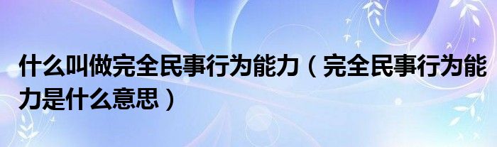 关于什么叫做完全民事行为能力,完全民事行为能力是什么意思这个很多人还不知道,今天菲菲来为大家解答以上的问题,现在让我们一起来看看吧!