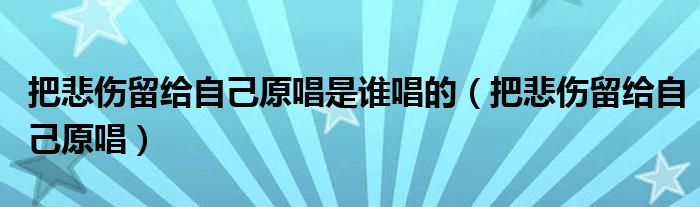 大家好,小晋来为大家解答以下问题,关于把悲伤留给自己原唱是谁唱的,把悲伤留给自己原唱很多人还不知道,今天让我们一起来看看吧!