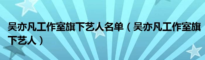 关于吴亦凡工作室旗下艺人名单,吴亦凡工作室旗下艺人这个很多人还不知道,今天菲菲来为大家解答以上的问题,现在让我们一起来看看吧!