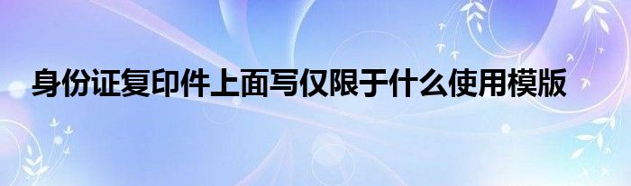 关于身份证复印件上面写仅限于什么使用模版这个很多人还不知道,今天菲菲来为大家解答以上的问题,现在让我们一起来看看吧!