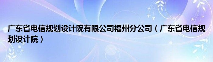广东省电信规划设计院有限公司福州分公司(广东省电信规划设计院)