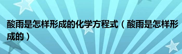 关于酸雨是怎样形成的化学方程式,酸雨是怎样形成的这个很多人还不知道,今天菲菲来为大家解答以上的问题,现在让我们一起来看看吧!