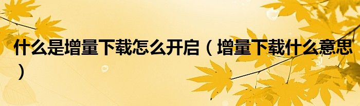 大家好,小晋来为大家解答以下问题,关于什么是增量下载怎么开启,增量下载什么意思很多人还不知道,今天让我们一起来看看吧!