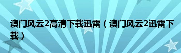 关于澳门风云2高清下载迅雷,澳门风云2迅雷下载这个很多人还不知道,今天菲菲来为大家解答以上的问题,现在让我们一起来看看吧!