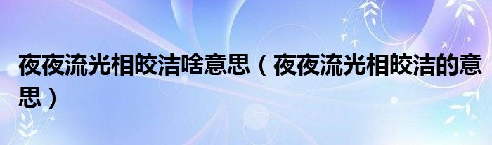 大家好,小晋来为大家解答以下问题,关于夜夜流光相皎洁啥意思,夜夜流光相皎洁的意思很多人还不知道,今天让我们一起来看看吧!