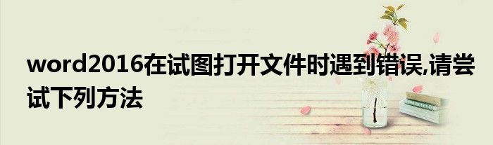 关于word2016在试图打开文件时遇到错误,请尝试下列方法这个很多人还不知道,今天菲菲来为大家解答以上的问题,现在让我们一起来看看吧!