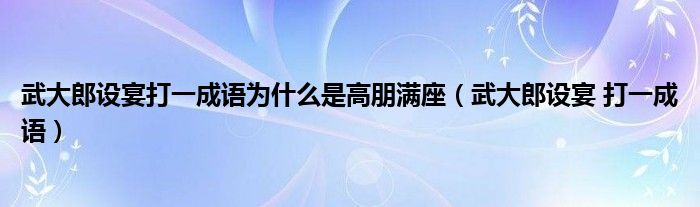 大家好,小晋来为大家解答以下问题,关于武大郎设宴打一成语为什么是高朋满座,武大郎设宴 打一成语很多人还不知道,今天让我们一起来看看吧!