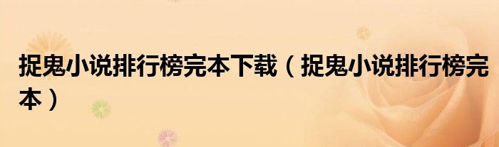 关于捉鬼小说排行榜完本下载,捉鬼小说排行榜完本这个很多人还不知道,今天菲菲来为大家解答以上的问题,现在让我们一起来看看吧!