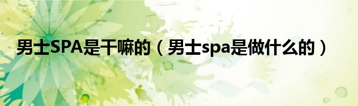 大家好,小晋来为大家解答以下问题,关于男士SPA是干嘛的,男士spa是做什么的很多人还不知道,今天让我们一起来看看吧!