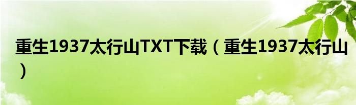 关于重生1937太行山TXT下载,重生1937太行山这个很多人还不知道,今天菲菲来为大家解答以上的问题,现在让我们一起来看看吧!
