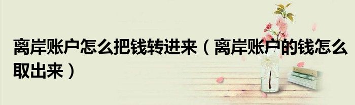 关于离岸账户怎么把钱转进来,离岸账户的钱怎么取出来这个很多人还不知道,今天菲菲来为大家解答以上的问题,现在让我们一起来看看吧!