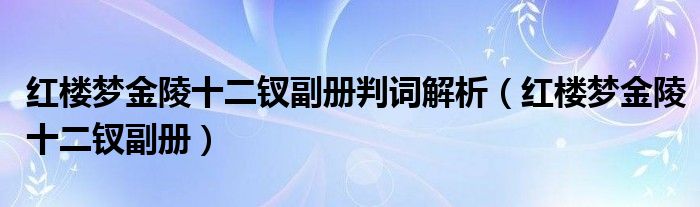 红楼梦金陵十二钗副册判词解析(红楼梦金陵十二钗副册)