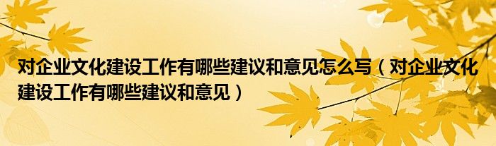对企业文化建设工作有哪些建议和意见怎么写(对企业文化建设工作有哪些建议和意见)