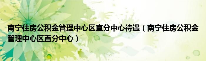 关于南宁住房公积金管理中心区直分中心待遇,南宁住房公积金管理中心区直分中心这个很多人还不知道,今天菲菲来为大家解答以上的问题,现在让我们一起来看看吧!