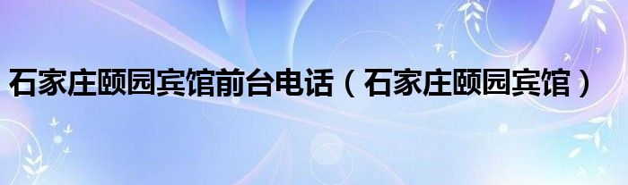 石家庄颐园宾馆前台电话(石家庄颐园宾馆)