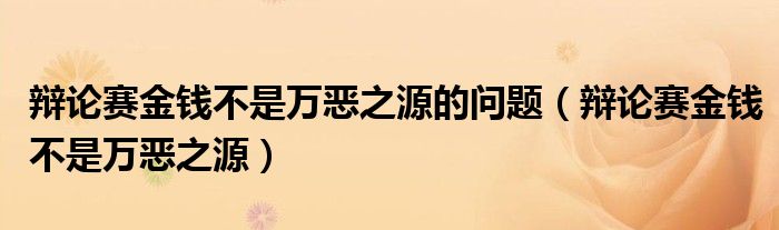 关于辩论赛金钱不是万恶之源的问题,辩论赛金钱不是万恶之源这个很多人还不知道,今天菲菲来为大家解答以上的问题,现在让我们一起来看看吧!