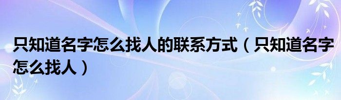 大家好,小晋来为大家解答以下问题,关于只知道名字怎么找人的联系方式,只知道名字怎么找人很多人还不知道,今天让我们一起来看看吧!