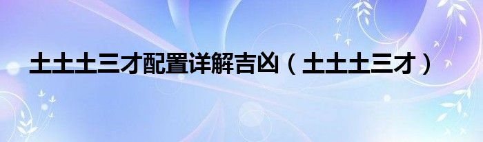 关于土土土三才配置详解吉凶,土土土三才这个很多人还不知道,今天菲菲来为大家解答以上的问题,现在让我们一起来看看吧!