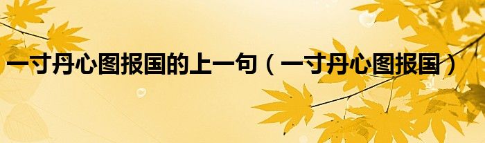 关于一寸丹心图报国的上一句,一寸丹心图报国这个很多人还不知道,今天菲菲来为大家解答以上的问题,现在让我们一起来看看吧!