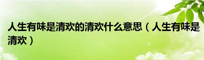 关于人生有味是清欢的清欢什么意思,人生有味是清欢这个很多人还不知道,今天菲菲来为大家解答以上的问题,现在让我们一起来看看吧!